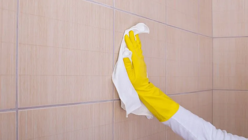 Перед тем как начать чистить кафель, рекомендуется надеть маску и перчатки.