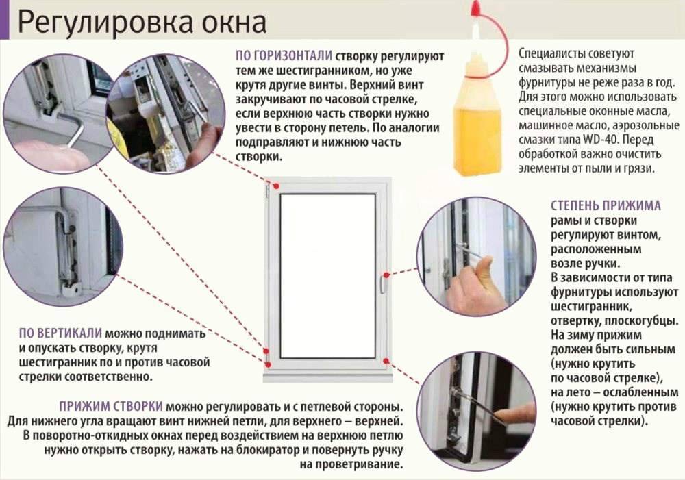 Профилактика, лучший метод борьбы с болезнью. Это же касается в полной мере и оконных блоков. Некоторые домашние мастера могут возразить: створка в принципе закрывается нормально, нигде не скрипит. Как определить, где крутить, поджимать, поворачивать. С одной стороны они правы. Нельзя лезть в отлаженный механизм. В то же время, некоторые отклонения в работе запорного и поворотно-откидного механизма можно найти на ранней стадии и устранить, не доводя до серьезных проблем.