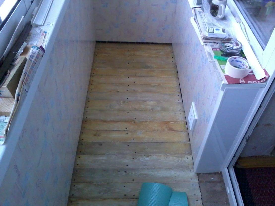 Пол на лагах на балконе готов, остается прикрепить плинтуса.