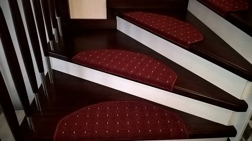 Эти коврики служат не только защитой пешеходов от падения на скользких ступенях. Они еще и собирают грязь с обуви людей, перемещающихся по лестничному маршу. Кроме того, ковровое покрытие, выполненное из ковролина, может стать элементов дизайна интерьера.