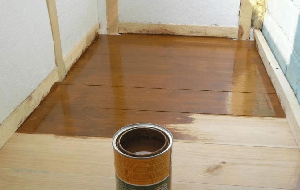 - Если использовалось обычное дерево на открытом незастекленном балконе, применяется рядовой прозрачный лак. Он сохраняет текстуру дерева, но продлевает срок его службы;