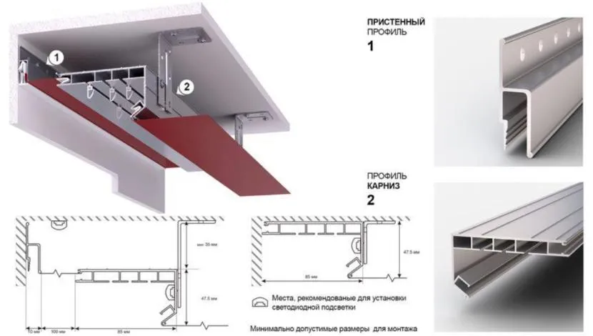 Разновидности ниш для скрытых карнизов