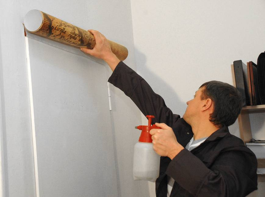 - последовательно проглаживать приклеенные фрагменты резиновым шпателем или сухой тряпкой в направлении сверху вниз и от центра к краям, не допуская образования пузырей и складок;