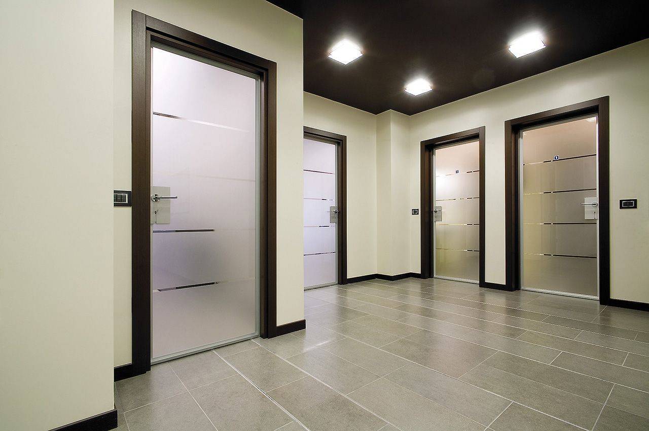 Темного цвета дверное полотно должно иметь стеклянные вставки. чтобы свет мог проникать сквозь стекло, тогда комната не будет выглядеть мрачно и уныло.