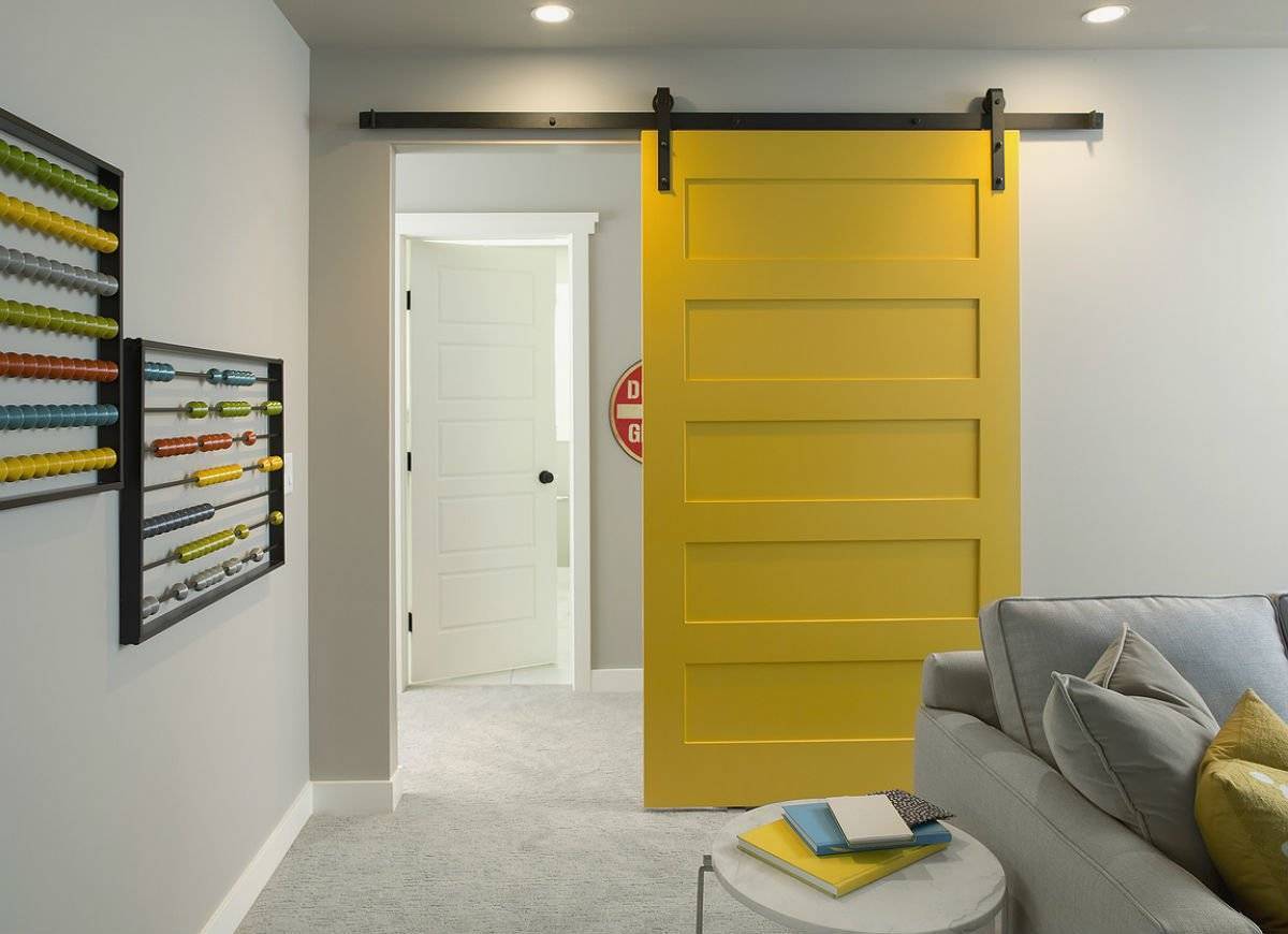 В детских комнатах дизайнеры делают из дверей доску для рисования. Этого удастся достичь, выкрасив полотно графитной краской, которая может быть представлена разными оттенками.