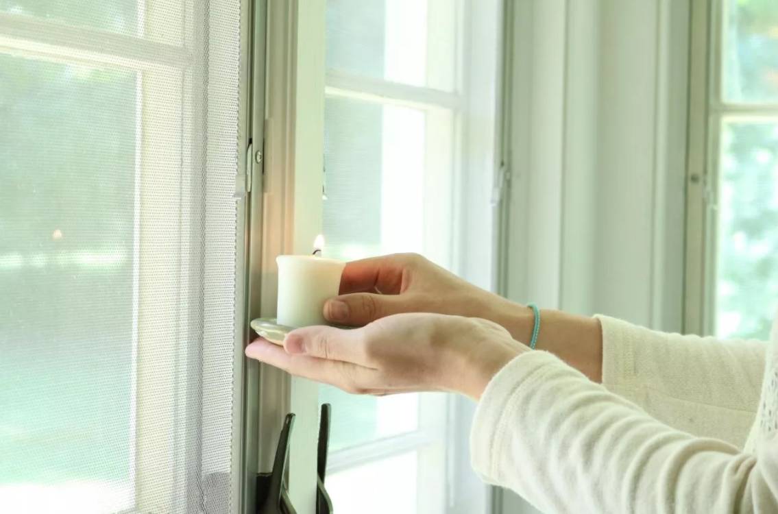 Поднесите к окну, и пройдитесь по периметру. Если пламя ровное – все в порядке