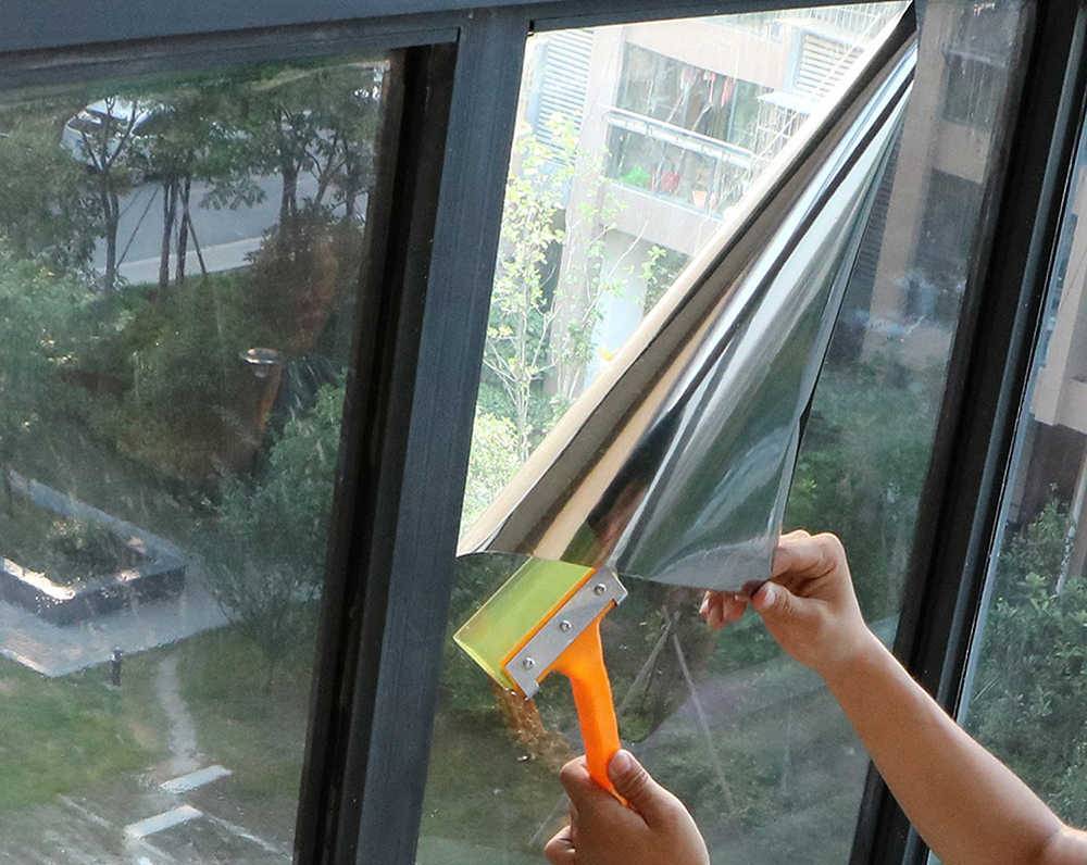 - Зеркальная. Этот вид имеет зеркальное напыление, хорошо отражающее лучи солнца и блокирующее обзор помещения снаружи в дневное время. Зеркальное светоотражающее покрытие расположено только с наружной стороны, поэтому оклеенные такой пленкой окна изнутри остаются прозрачными, но приобретают дымчатый оттенок. Зеркальной пленкой удобно защищать окна, расположенные на солнечной стороне. Ею также можно покрывать двери, окна и витрины в случаях, когда необходим односторонний обзор.
