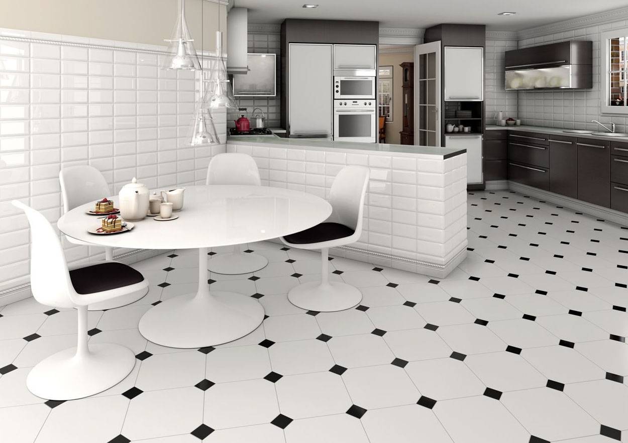 Белая напольная плитка с черными вставками тонкости дизайна интерьера