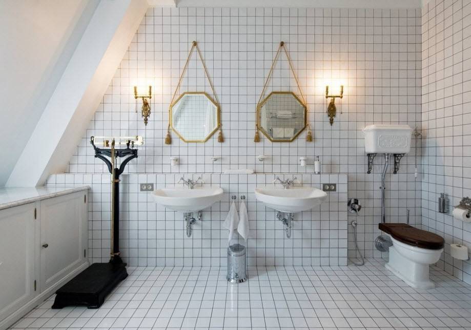 - Белая плитка непрактична в качестве напольного покрытия и может использоваться лишь в комбинации с другими отделочными материалами.