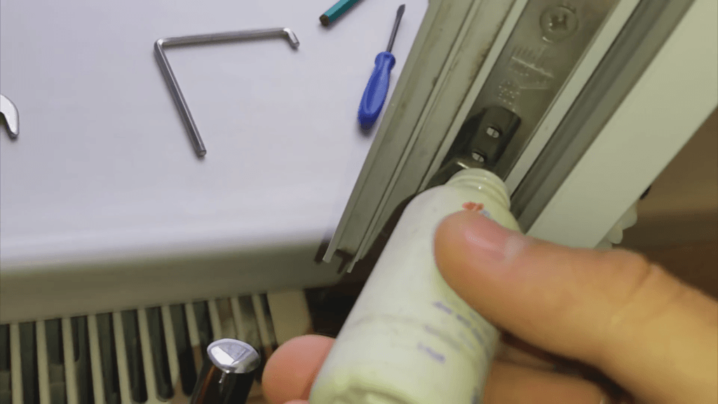 Когда изделие снято, можно осуществлять ремонт и смазывать крепления.