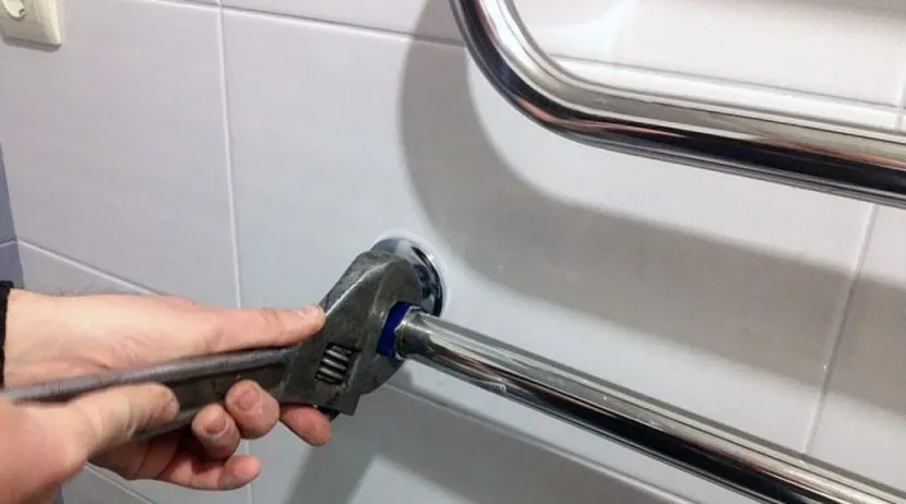 Придется открутить гайку, которая соединяет трубу горячего водоснабжения с полотенцесушителемИсточник stroy-podskazka.ru