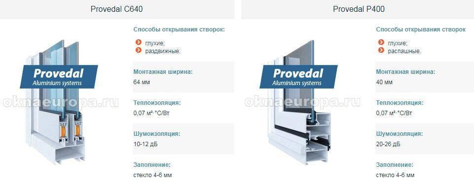 Вариант профиля с раздвижным способом открывания (слева) и распашным (справа). Нагляднее о системе Provedal вы сможете узнать, нажав на изображение.