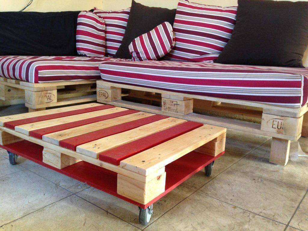К примеру, наиболее простой конструкцией является обычный столик. Стол состоит всего из двух паллет. Один выполняет роль столешницы, а второй обрезается и крепится снизу посередине и служит ножкой. Если есть необходимость частого перемещения стола, имеет резон прикрепить к нижнему поддону колесиков. Они облегчат перемещение столика по участку.