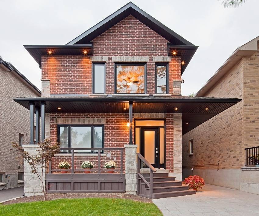 При наличии кирпичных стен фронтоны, количество которых может варьироваться, также делаются из кирпича.