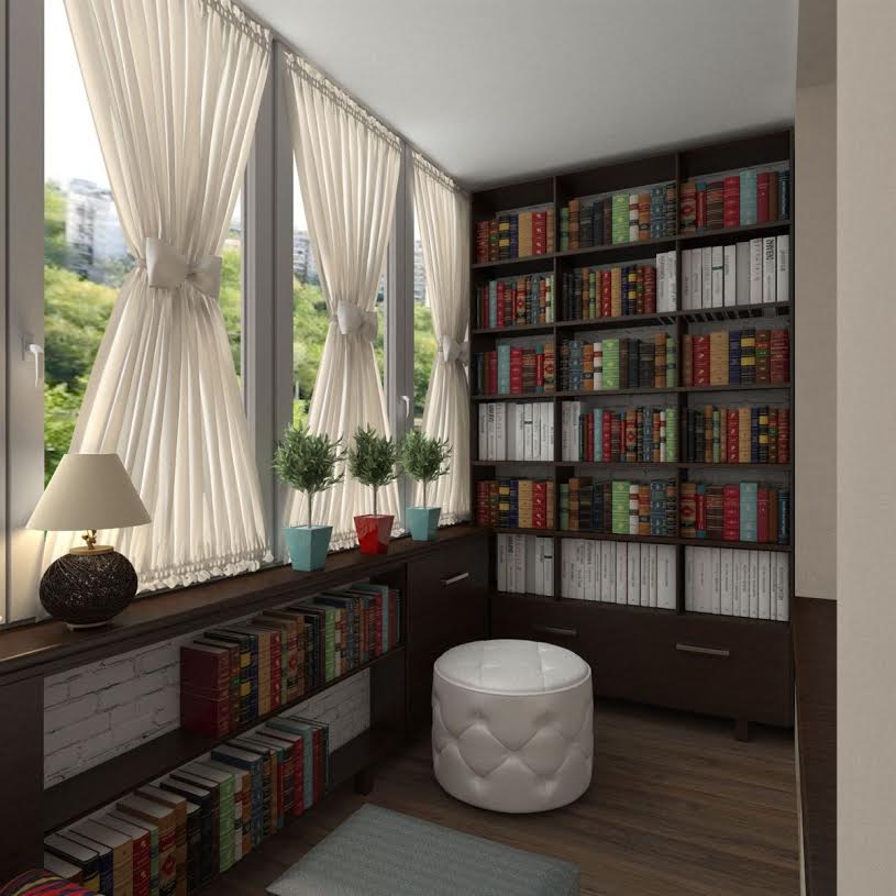 После оформления стен, пола и потолка можно подходить к созданию дизайна интерьера. Так как лоджия – это, как правило, маленькое помещение, необходимо все тщательно спланировать, ведь кабинет должен быть функциональным.