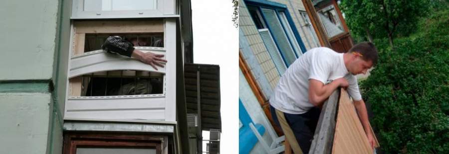 Состояние стремянки должно быть хорошим, так как работа на балконе с плохой стремянки недопустима. Если есть риск, при падении со стремянки, оказаться вне балкона снаружи, обязательно требуется использовать монтажный пояс и закрепить карабин хотя бы за уголок барьера.