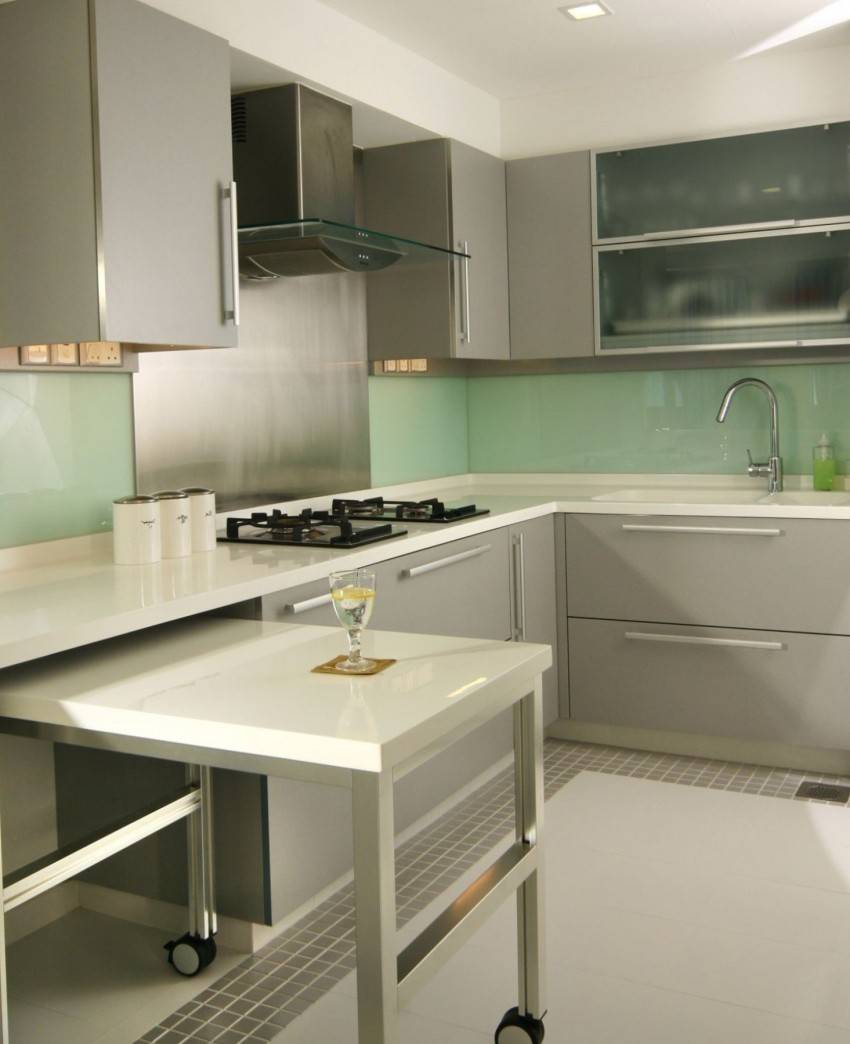 Большинство кухонь в современных квартирах имеют площадь 5-10 кв. м. В таком помещении достаточно сложно разминуться нескольким людям, из-за чего возникает необходимость экономии пространства. Складные столы обычно встречаются в современных кухнях (как самый эргономичный вариант). Чаще всего в помещении используются длинные откидные модели, которые можно прикреплять к стене, в разложенном виде они способны вместить всю семью. Длина столешницы, как правило, намного больше, чем ширина.