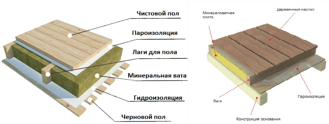 В качестве утеплительного материала можно использовать минеральную вату, пенополистирол или же уложить электрический либо инфракрасный теплый пол. Вполне в качестве материала для напольного покрытия можно использовать линолеум, ламинат, деревянные доски, керамическую плитку и даже ковролин. А вот окончательный выбор зависит от требуемых возможностей и характеристик материала и условий его эксплуатации.