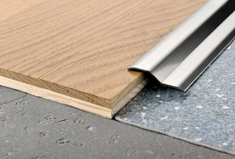 - Переходной профиль также используется для стыковки ламината и плитки при наличии ступеней до 30 мм.