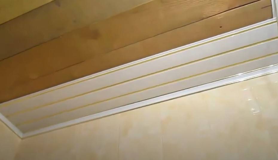 Чтобы избежать образования щелей в плинтусе, при поджимании панелей саморезами к потолку подложите обрезки пластика.