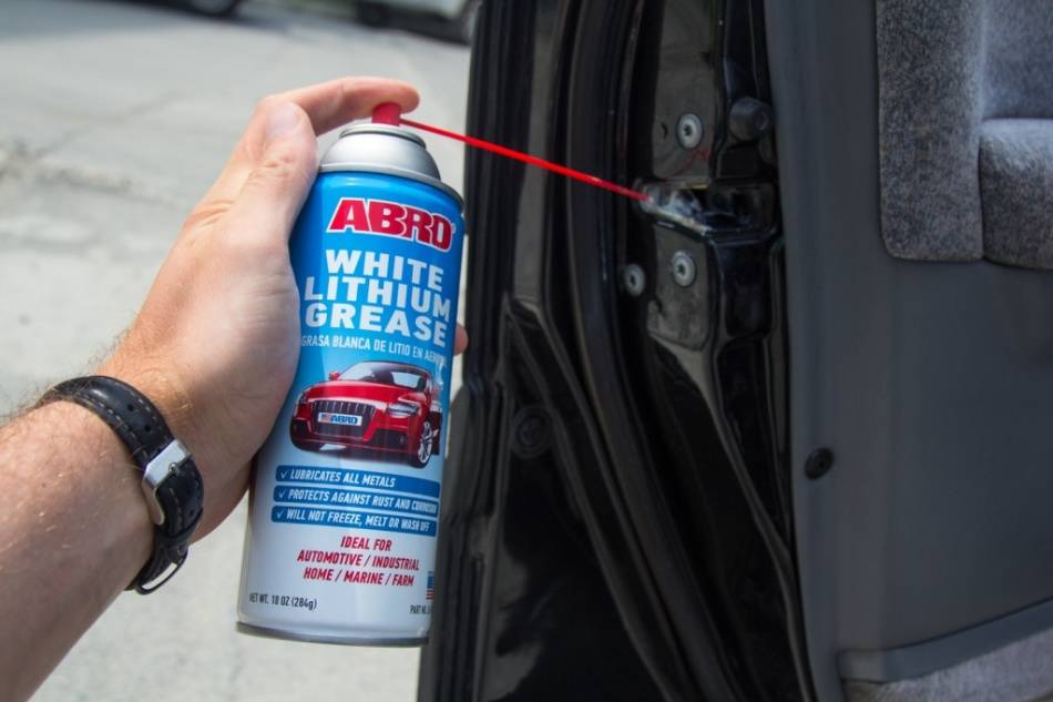 Разбирать двери для смазки замков и петель не нужно (если нет внутренних повреждений или структура не забилась грязью). В большинстве автомобильных и хозтоварных магазинов найдутся смазочные материалы в специальной таре: баллон с насадкой, которая снабжена длинным тонким хоботком.