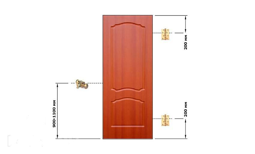 После подготовки всего необходимого для установки замка в дверь инструмента, можно приступать к выполнению работ. Первым делом необходимо решить, какое положение будет занимать дверь в установленном состоянии. Чтобы определиться, с какой стороны будут закреплены петли, а с какой врезан замок, можно приставить дверное полотно к стене возле проёма. После этого необходимо отметить места для врезки замка. Этот процесс несложный и с ним сможет справиться даже новичок. Следует от нижнего края дверного полотна с помощью рулетки отмерить 800-900 мм. На такой высоте, как правило, и производится установка замков и ручки на двери.