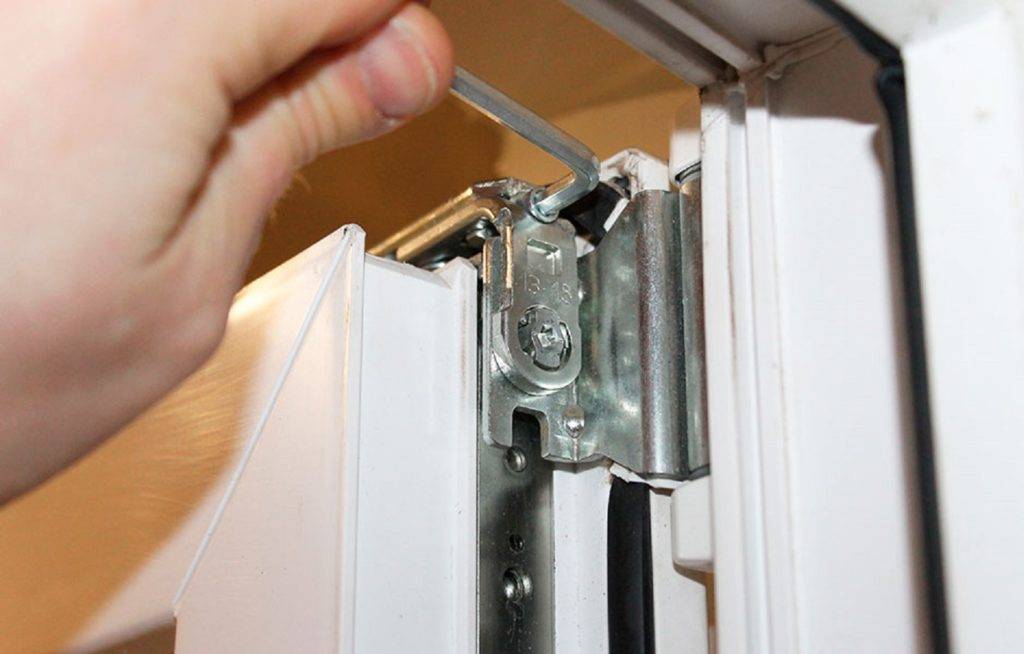 В распашных конструкциях створка удерживается на счет навесов. Их всегда несколько, чтобы вес полотна распределялся более равномерно. Балконная дверь хороша тем, что в конструкции применяют навесы, которые легко регулировать. Их нужно подкорректировать, если балконную пластиковую дверь перекосило, она стала затираться, роликовая защелка не срабатывает, тянет холодом из-под двери.