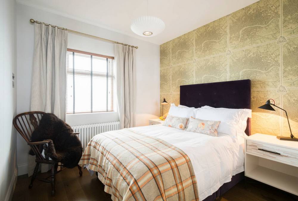 Метод разделения стены и особенности поклейки обоев в спальне: фото в интерьере
