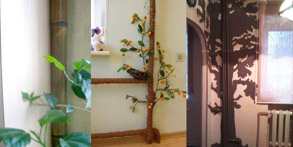 Декупаж – это отличный способ обыграть трубы, которые находятся в углах или посередине стен. Для этого можно использовать джут, чтобы обмотать основу коммуникации, задекорировав всю основную часть под лиану или дерево.