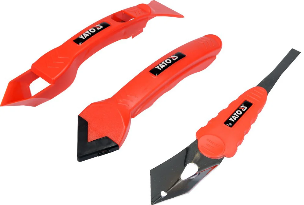 Оно выполнено из твёрдого но очень тонкого металла, что поможет очень легко снять его с любых поверхностей: металла, плитки, пластика.— Нож. Хорошо устраняет объемные скопления уплотнителя.
