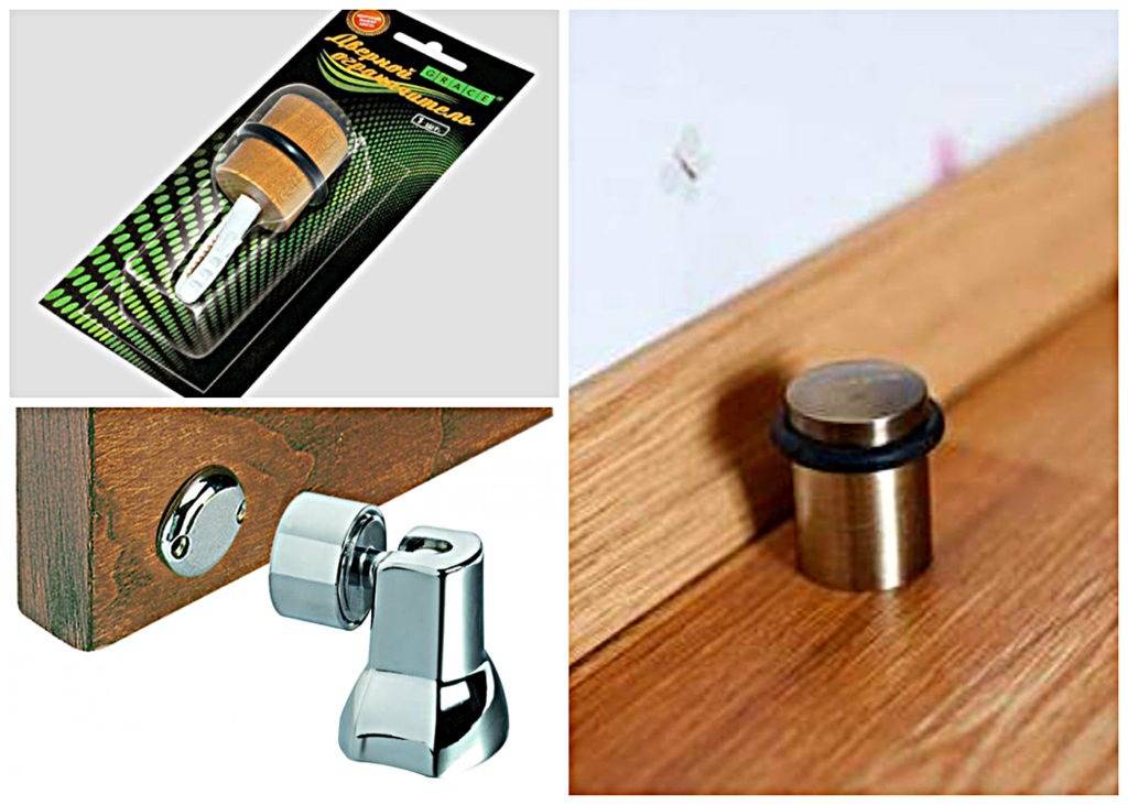 - Отбойники – предназначены для смягчения удара дверного полотна о мебель или стену;