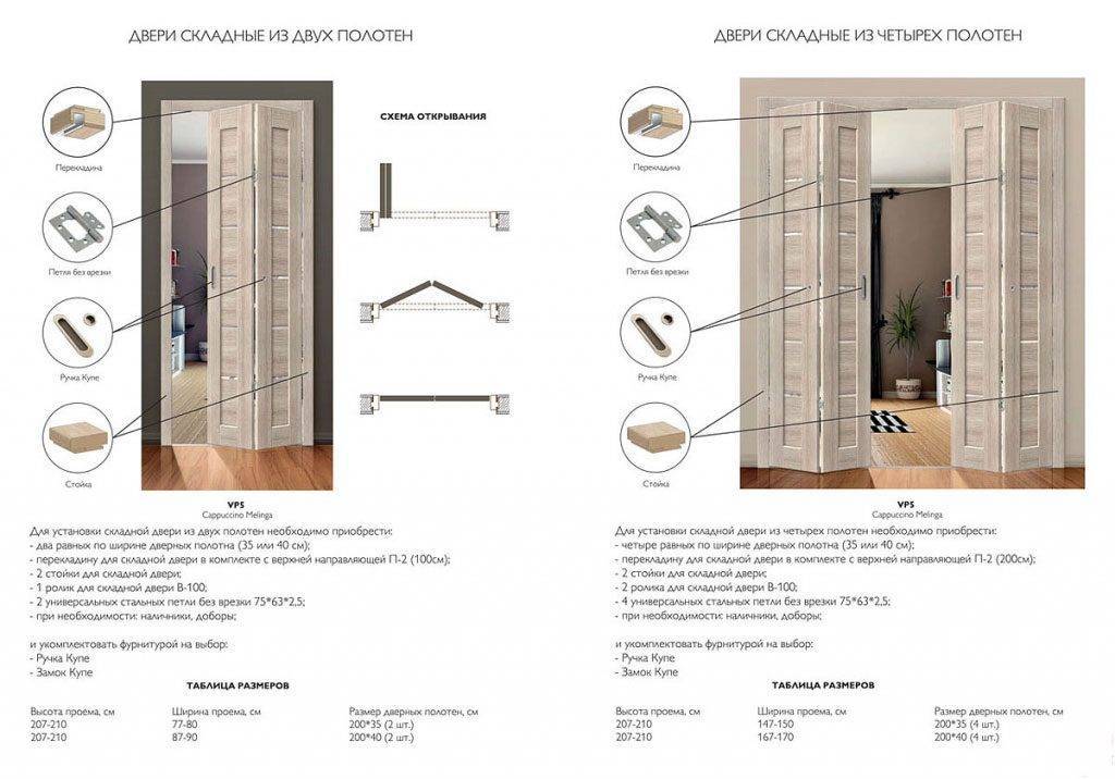 Техническими характеристиками раздвижных дверей-книжек являются: