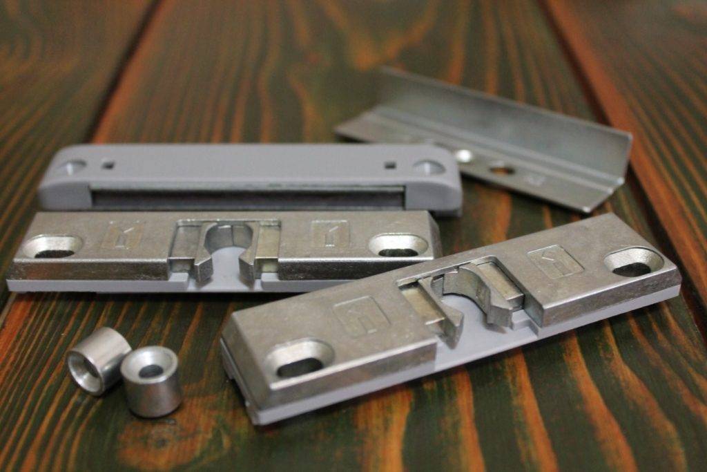 Каждая разновидность удерживающих элементов имеет ряд преимуществ и несколько недостатков. Еще защелки бывают нескольких типов, в зависимости от материалов, которые применяются для их изготовления: пластиковые, металлические, с комбинацией этих двух материалов.