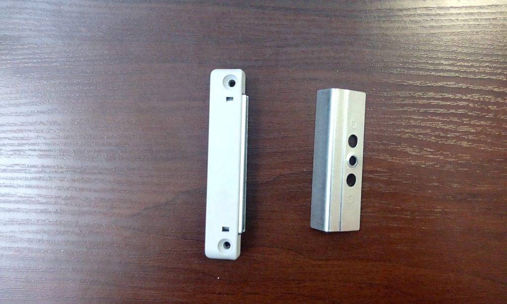 Для начала снимают старую защелку, после чего приступают к установке нового механизма. На раме конструкции устанавливают магнитный элемент защелки, а на самом полотне ответную металлическую пластину.