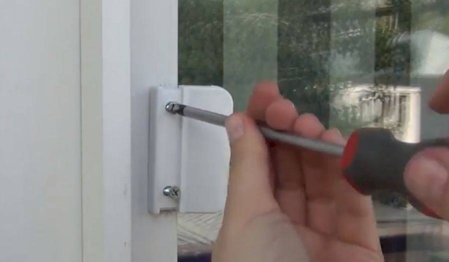 Теперь необходимо немного прикрыть дверь и при помощи карандаша сделать пометки в месте крепления второй части фурнитуры, после чего закрепить ее в соответственном месте. После того как установка защелки на пластиковую балконную дверь прошла успешно, с обратной стороны конструкции установить ручку курильщика, если ее не было ранее.