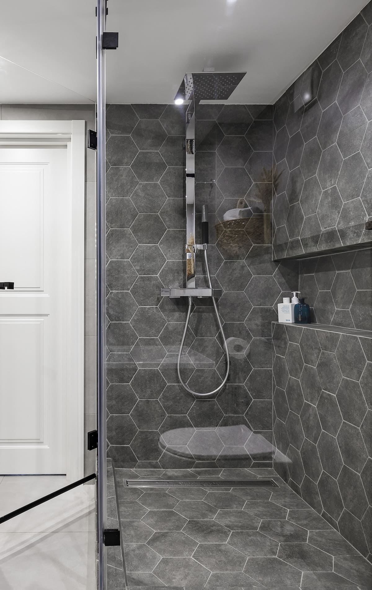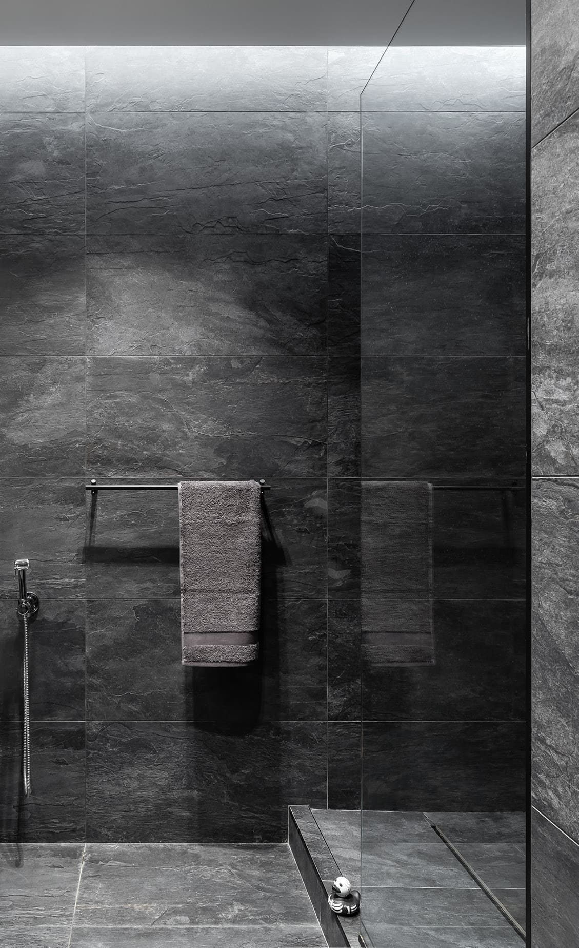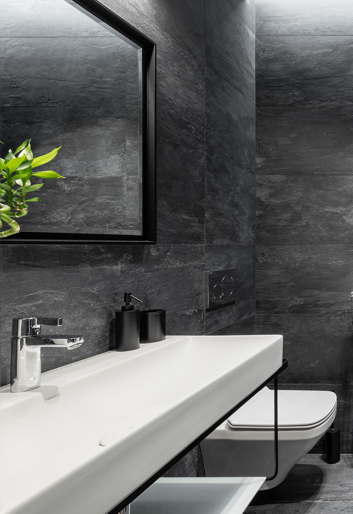 Модной тенденцией на 2022 год будет однотонная и нейтральная поверхность. Но игра с контрастами также допустима. При чем комбинировать можно не только оттенки, но и фактуру материала. Благодаря такому приему можно зонировать пространство, красиво подчеркнув дорогостоящую ванную либо умывальник.