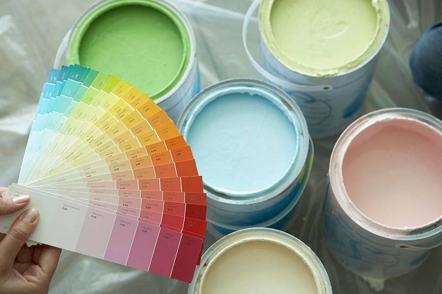 Преимущество красок в том, что можно подобрать практически любой цвет и оттенок, благодаря смешиванию пигмента с базой – глянцевой, матовой, полуматовой. В зависимости от концепции дизайна выбирают цвет.