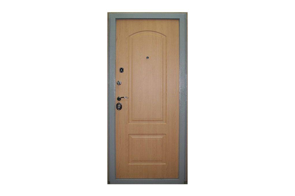 В этом случае не устанавливается специальная бронепластина для замка, а для ребер жесткости используется обычный металлический профиль или уголок без дополнительного усиления. Также такие двери достаточно легко отличить и по отделке – это, как правило, панели МДФ, фанера и другие недорогие листовые материалы.