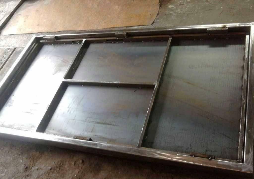 К стальной пластине дверного полотна приваривают ребра жесткости. Они нужны для усиления конструкции, бывают вертикальные и горизонтальные. Общее количество — от 2 до 10. Сделаны из профильной трубы или специальных цельногнутых П-образных профилей. Вертикальные ребра жесткости должны быть цельными и идти от самого верха до низа полотна.