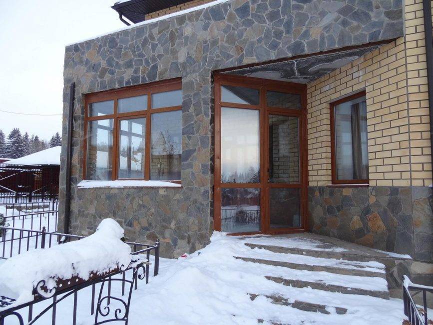 - хороший обзор придомовой территории благодаря наличию стеклянных вставок;