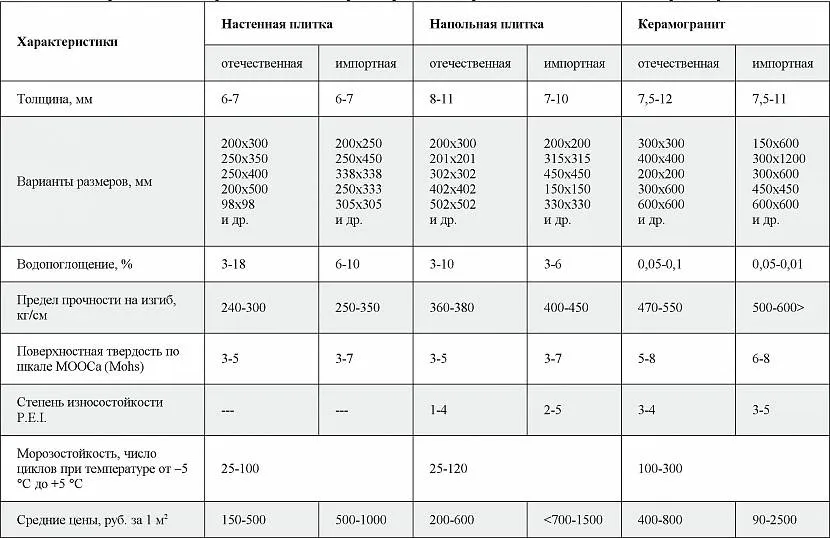 Параметры плитки для кухни и технические характеристики Источник vannayasovety.ru
