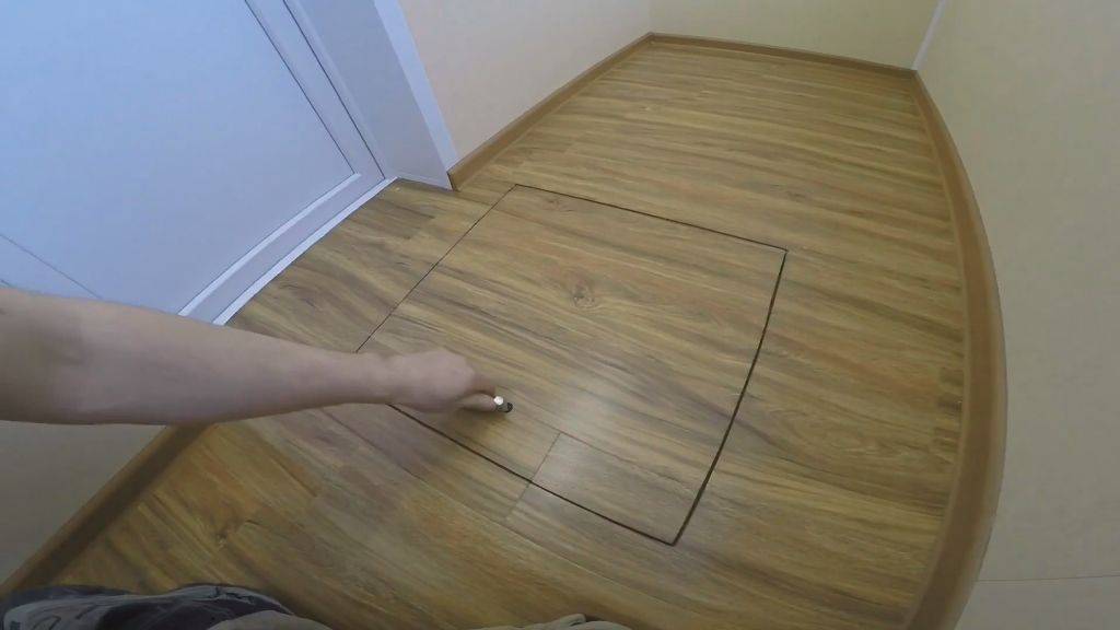 В противовес работе с ламинатом, отделку начинают не с изготовления крышки, а с укладки материала на пол. Делают это одним из стандартных способов. Как только вы дойдете до люка, можно приступать к его оформлению.