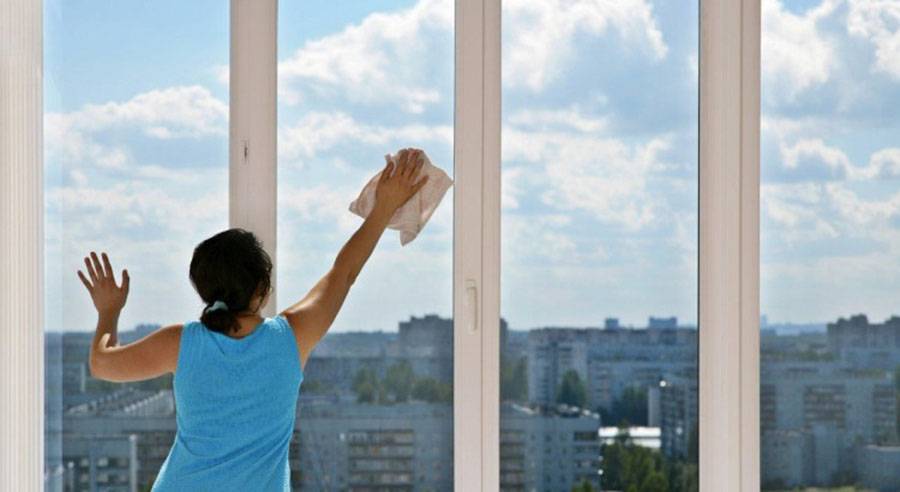 Затем приступают к стеклам. Очистку можно выполнять влажными салфетками для оргтехники. Сильные загрязнения лучше удалить специализированным моющим средством или спреем. При их использовании рекомендуется придерживать дозировки. Избытки жидкости удалить сложно. Снизить пылеобразование позволит вода с глицерином. Избавиться от обледенения поможет кухонная соль. Для раствора берут 40 г соли на 1 л воды. Зимой уместно мытье на балконах только для очистки внутренних рам. Наружные стеклопакеты оставляют до весеннего потепления. Наледь является исключением.