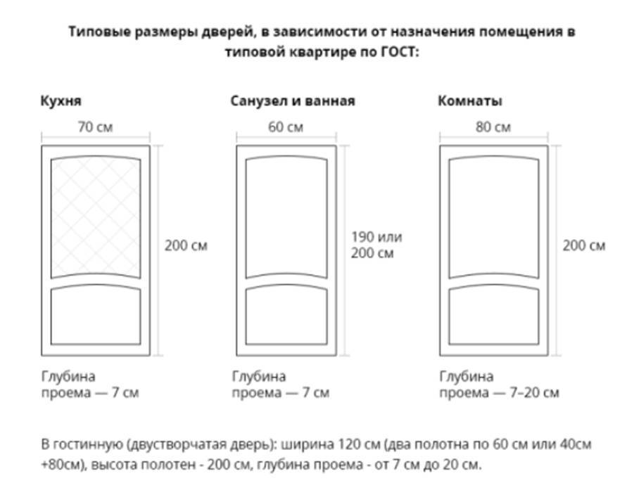 Нестандартные размеры полотна может иметь только высота изделия, так как ширина бывает только в нескольких значениях: 60, 70, 80 и 90 см. Стандартная ширина касается не только межкомнатных дверных конструкций, но и входной двери в квартиру или дом.