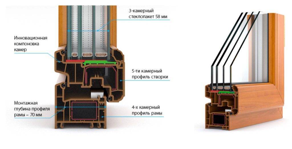 Трёх камерные – в Центральной России не используются. Популярны в северных широтах. За счёт увеличения веса стеклопакетов в них устанавливаются более мощная фурнитура, усиленный профиль, что отражается на цене готового изделия.