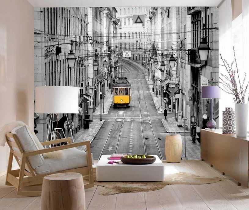 Применение глянцевых покрытий приемлемо только в том случае, если вы используете фотообои, но конечный результат интерьера будет зависеть от правильности выбора рисунка (для коридора подойдут городские и природные тематики).