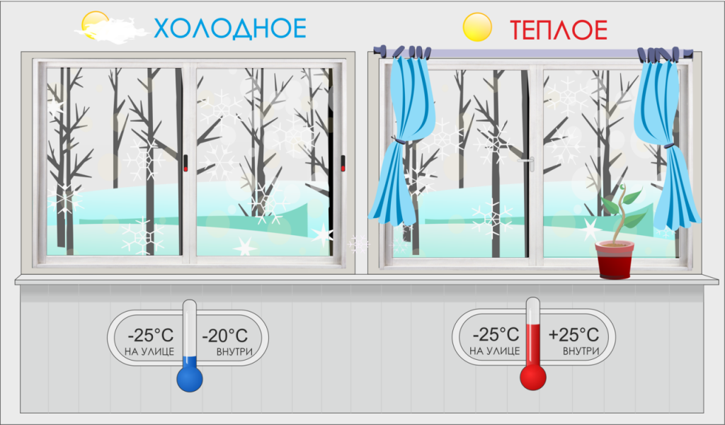 - зимний период грозит замерзанием льда сверху стеклопакетов, что затруднит процесс их открывания.