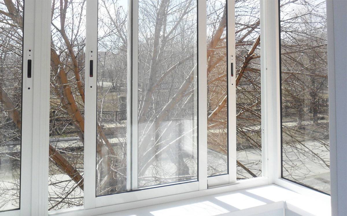 Вторым популярным вариантом является сдвижное окно, которое открывается вбок. Это наилучшая конструкция для небольших балконов. Для створки не требуется места, т.к. она движется вдоль рамы.