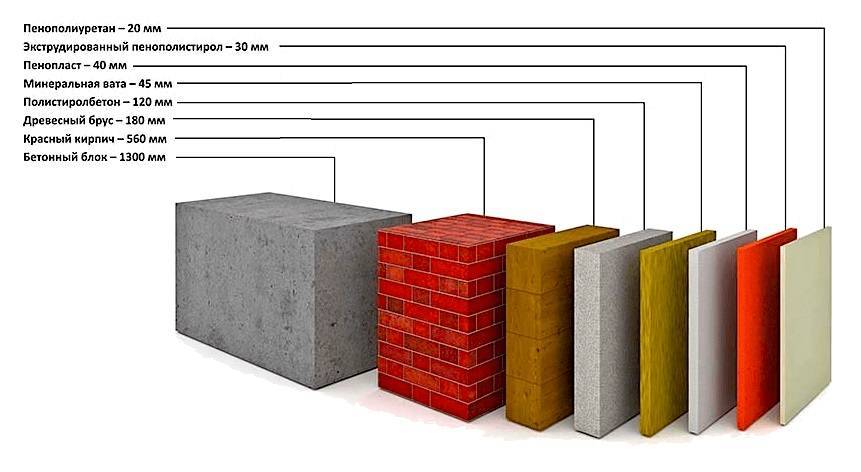 | Наименование материала | Толщина, обеспечивающая равную термоизоляцию, мм | Стоимость, руб. за кв. метр | Цена утепления, эквивалентного 1 м кирпича, руб. |