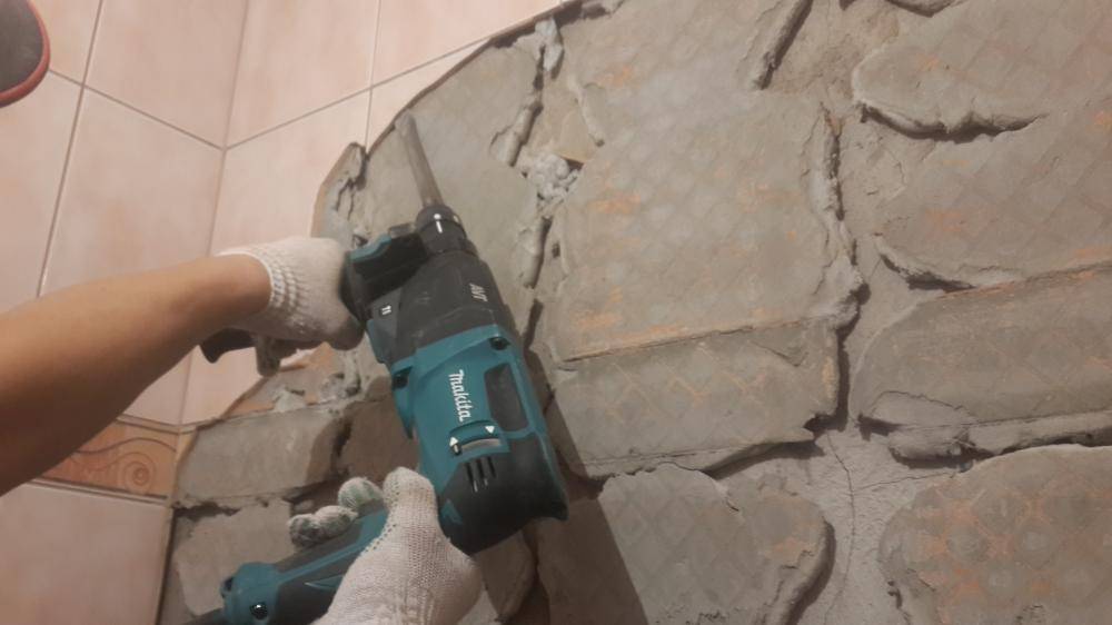 - плитку сбивают вместе с клеем или раствором до старой штукатурки или стены;